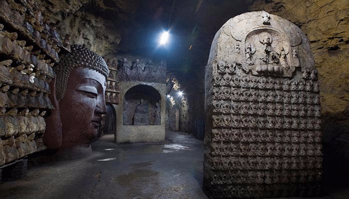 千佛山古稱歷山,因?yàn)楣攀贩Q舜在歷山耕田的緣故,又曾名舜山和舜耕山。隋開皇年間,因佛教盛行,隨山勢(shì)雕刻了數(shù)千佛像,故稱千佛山。